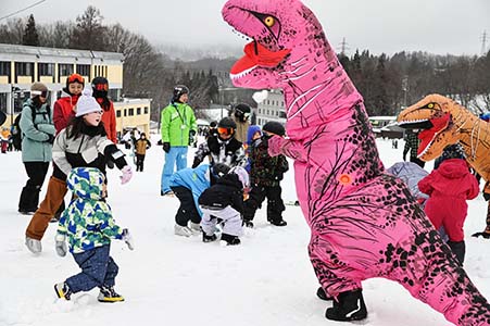 写真=恐竜を倒せ、子ども雪合戦