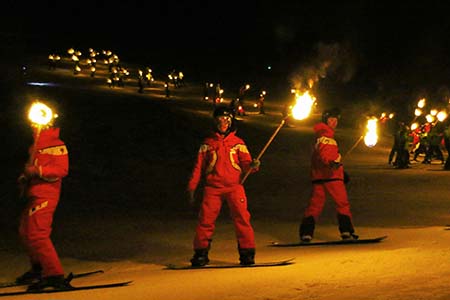 写真=ゲレンデにたいまつの軌跡が描かれた