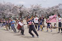 大町市の大町公民館は20日、大町西小学校グラウンドで「大町地区市民運動会」を開いた。今年は昨年より1分館が増え、3分館による「分館エントリー」と、家族や仲間単位の当日編成の個人エントリーによる「チャレンジチーム」で実施。150人を超える地域住民が参加して、満開の桜の木の下で多彩な競技を楽しみ、地域や住民相互の連帯感を強めた。 |