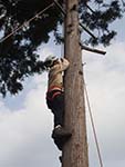 敷地内のスギの木でツリークライミングにも挑戦した。子どもも大人も、足場を確かめながら約15bほどの高さまで登り、展望を楽しんでいた。 |