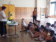 生け花の技「すごい!」 池田会染小 住民と「ライブ」で交流