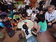 県教育委員会は10日、複数の学年の児童が一緒に学習する「異年齢の学び」の公開授業を白馬村の白馬南小学校で行った。全校児童89人が上級生と下級生で膝を突き合わせながら意見を交わし、リーダーシップや社会性などを育んだ。 |
