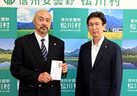 松川村神戸の高校教諭・榛葉亨さん(58)は、28日から10月1日まで滋賀県湖南市で行われる第79回国民スポーツ大会(国スポ)で、剣道競技の成年男子の部に長野県代表として出場する。5人団体の最後を務める大将で、県選手団291人の旗手にも任命された。9月22日、村役場を表敬訪問した。