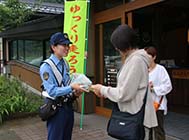 秋の行楽 安全運転で 大町署と糸魚川署 道の駅小谷で合同啓発