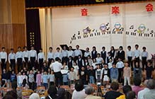 大町市の八坂小中学校は9月27日、そよかぜ校舎で音楽会を開いた。「こころにひびけ八坂シンフォニー」のスローガンのもと、前期課程・後期課程の全校児童生徒が日頃の音楽学習の成果を披露。美しい歌声や演奏が、会場いっぱいに広がった。 |