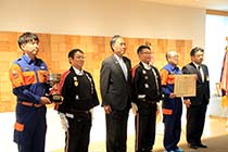 長野市の県消防学校で7月に開催された第67回長野県消防ポンプ操法大会・第34回長野県消防ラッパ吹奏大会の小型ポンプ操法で優勝した池田町消防団(荻窪善明団長)の2分団1部は10月22日、県庁を訪れ阿部守一県知事を表敬訪問し、大会の結果を報告した。 |