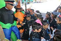 ハロウィーンの時期に合わせ、白馬村と小谷村の各地でイベントが開かれている。白馬村では23日、白馬駅前振興会とJR白馬駅が村内保育施設の園児を駅に招き、お菓子を配った。仮装をした子どもたちが「トリック・オア・トリート。お菓子をくれなきゃいたずらしちゃうぞ」と元気良く声を上げ、笑顔で受け取った。 |