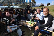 池田町内産ブドウを使ったワインなどを楽しむ「あづみ野いけだまちワインまつり2025」(町なでつくる実行委員会主催)が1日、安曇野池田クラフトパークで開かれた。県内外から約750人がれ、三段紅葉となった北アルプスや麓の景色を眺めながら、「北アルプス・安曇野ワインバレー特区」である町内産ブドウのワインを中心とした飲み比べなどを楽しんだ。 |