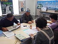大町市平花見地区の有志でつくる「はなみフラワーズ」(田邊一弘代表)は10月26日、「秋のお楽しみ会」を花見公民館で開いた。そば打ち名人の打った新そばを味わい、集まった人もそば打ちを体験しながら交流を深めた。 |