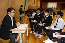 大町市の大町中学校で6 日、地域住民らを招いた「キャリア座談会」が開かれた。2 年生159人が各分野の専門家に、仕事のやりがいや苦労など思い思いの質問をぶつけ、自らの将来の在り方を考えた。 |