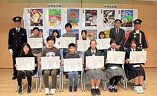 池田松川防火管理者協議会(松田正之会長)、大北南部消防連絡協議会(奥原康隆会長)、北アルプス広域南部消防署(鳥羽健一署長)は6日、池田町・松川村の小中学生から募った防火ポスターコンクールの表彰式を池田町役場で開いた。両町村の小中学生から応募された計90点の火災予防を訴える力作の中から計12点が選ばれ、入賞者が表彰された。 |