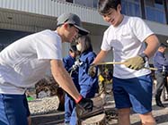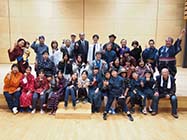 大町市の美麻小中学校で11日、地区内の外国籍住民らを招いた交流会が開かれた。7年生9人が郷土食のおやき作りを一緒に体験。日頃の英語学習の成果を発揮し、地域の暮らしや伝統文化を紹介した。 |