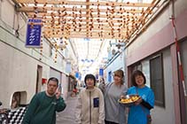 柿すだれ揺れ 通り彩る 大町名店街で「がんばりやさん」