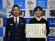 大町市内で道に迷った高齢男性を保護、救助したとして、大町若原町の成松秋星さん(16)=つくば開成学園高校1年=が20日、大町署から感謝状を受けた。家に帰ることができない様子の男性を落ち着かせ、警察に通報するなど機転を利かせた行動で無事保護につなげた。