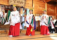 厳か浦安の舞 実りに感謝 大町市社の国宝「仁科神明宮」 伝統行事 「新嘗祭」 で奉納