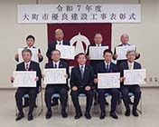 大町市は27日、市発注の建設工事で優れた成績を収めた事業者に対する表彰式を市役所で開いた。昨年度完成した43工事のうち、安全な施工管理や工事の品質などを評価された4工事が受賞した。