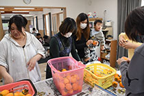 親子と住民 干し柿づくり 大町市保健センター 平で「〇〇の日」焼き芋も