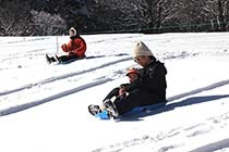 園内では5日までに約10aの積雪があり、職員が急ピッチでゲレンデを整備。アルプス大草原とアルプス広場に、長さ約20bと40bのコースを用意した。ハンドル付きの「スノーレーサー」や円形の「ツイスター」など多彩なそりが並び、来園者が雪原を滑り降りながら、歓声を上げていた。 そりゲレンデの滑走の可否はホームページで公開している。 |