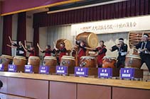 大町市の「大町流鏑馬太鼓」(北澤真二代表)は7日、ばち納め演奏会を平公民館講堂で開いた。新メンバー加入で挑んだ1年間、その成長した姿を、支援してくれた地域の人々に感謝を込めながら力強い演奏で披露した。