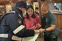 飲食店が集中する北城エコーランドと八方に分かれて実施。同署と村、八方尾根観光協会、区の役員らが参加した。エコーランドの飲食店は多くの外国人でにぎわっており、従業員にチラシや啓発物を配布して店内に掲示するよう求めた他、歩行者にも手渡した。 |