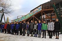 セレモニーでは、児童がジャンプ台の歴史や4年生の頃から取り組んできた活動を報告。自分たちを最後に使えなくなったジャンプ台の復活を願い、総合的な学習の時間を用いてクラウドファンディングや募金、フリマやアルバイトなどで資金集めをしたことが報告された。児童たちは「多くの皆さんのおかげで完成した。私たちの活動へのご協力ありがとうございました」と感謝を述べた。同校の卒業生で五輪ノルディック複合メダリストの渡部暁斗・善斗選手からもビデオメッセージが寄せられた。 |