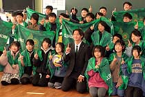 同日、田中選手や小澤修一社長は町役場を表敬訪問し、ホームタウンの矢口稔町長に今シーズンの活動を報告。町民の応援に感謝し、来シーズンの奮起を誓った。 |