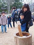 つきたて「おいしーい」 信州こどもカフェ 松川「リズム」餅つきに100人