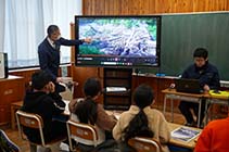 大町市八坂小中学校の5年生を対象に18日、北陽建設(同市社)による出前授業「防災教室」が行われた。同社取締役技術営業部長の鮎貝悟さんと社員ら4人が来校。自分たちの暮らす地域の過去の災害事例などから、土砂災害の恐ろしさについて学び、安心安全の暮らしを守る砂防事業の役割について学びを深めた。