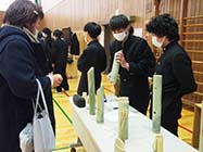 池田町の高瀬中学校3年生64人は19日、総合的な学習の時間のまとめの発表を行った。保護者や学習に協力した地域住民らを前に、学習の成果を発表し、地域資源を活用した製品などをPRした。 |