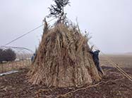 大北地域の各地で、小正月の伝統行事どんど焼きに向け、やぐら作りの作業が行われている。 |