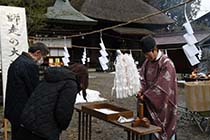 大町市大町俵町の若一王子神社で30日と31日、罪けがれを祓い清める「師走の大祓式」が行われている。気持ちよく新年を迎えられるよう、多くの地域住民が参拝し、新年の平穏無事を祈っている。