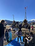 大町市俵町では10日、どんど焼きが行われた。毎年、北小学校俵町PTAが主催し、開催している。 会場には2基のやぐらがお目見え。各家庭から持ち寄った正月飾りや書き初めなどを飾り付けた。着火すると火は盛大に燃え上がり、赤々と燃える炎に子どもたちの健やかな成長を願った。 |