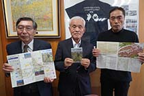 大町市の木舟城研究会が、木舟城を紹介するパンフレット「信濃大町・木舟城跡」を作成した。23日は同会の高橋博久会長と中島登美雄副会長、内川亨事務局長の3人が市役所の市教育委員会を訪れ、中村一郎教育長にパンフレット1500部を寄贈した。 |