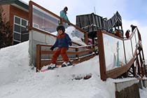 白馬村の白馬北小学校で27日、同校伝統のスキージャンプ学習が始まり、4年ぶりに復活した「小ジャンプ台」を児童が飛んだ。復活に向けて取り組んできた5年生が1、2時間目に1番乗りで飛び、初めてのジャンプ学習となる1年生も挑戦。「楽しい」「気持ちが良い」と楽しげな声を響かせていた。 |