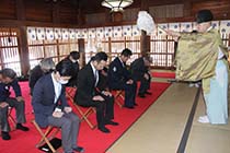 北アルプス北部地区山岳遭難防止対策協会は13日、大町市の若一王子神社で安全祈願を行った。管内の遭難事故が増加する中、救助隊や大町署などの関係者8人が、隊員の無事故や登山者の安全を願った。 |