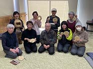 小谷村の複合拠点施設「おたりつぐら」で9日、手編みで仕上げる小谷の伝統工芸品「猫つぐら」職人の細澤清文さん(85)=北小谷深原=とともにわらで鍋敷きを作る催しが開かれた。村内外から4人が参加し、細澤さんら職人の手ほどきを受けながら作業しつつ、わら細工の奥深さや難しさ、世間話に花を咲かせた。 |
