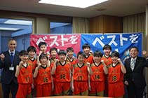 大町市や安曇野市の小学生で構成するミニバスケットボールの12歳以下チーム「RAISING JAM U12」が、28日から31日にかけて東京都で開催される「第57回マクドナルド全国ミニバスケットボール大会」に県代表として出場する。全国大会はチーム結成以来、初の快挙。大町市内のメンバー12人は13日、市役所を訪れ、牛越徹市長に全国大会への抱負を力強く語った。 |