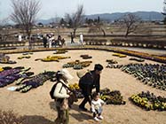 村の花だん苗生産グループ「Mフラワー」が、色とりどりのパンジーやビオラの苗約1万2000株を用意。絵本画家・いわさきちひろの作品「にじのはし」をモチーフにした花苗の地上絵が披露された。パンジーの即売会には、苗を買い求める人たちで活気づいた。 |