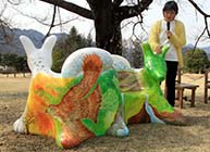 万博のオオカミベンチ展示 日本の原風景描いた「Four Seasons」 鴻池さん作品 ちひろ公園に