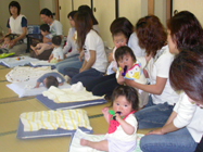 アロマセラピーで気分を落ち着かせ、ベビーマッサージを行いながら、子どもとのふれあい、母親同士のコミュニケーションも図ろうと、アロマセラピストの細田恵理さん、NPOハートフルコミュニケーション認定講師・長谷尾満さん、市社会教育指導員読み聞かせ担当・遠藤由香さんの3人を講師に、10月まで6回にわたり開かれる。 |