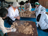 安曇野市堀金烏川、国営アルプスあづみの公園春の歳時記イベント味噌(みそ)炊きは25日から27日まで同公園で開いている。地元の老人クラブやあづみの・公園パートナーが指導し、松本大学生や一般参加者などが地域の食文化と味を体験している。 |