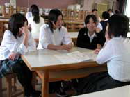 安曇野市の穂高商業高校(大野整校長)は14日、同校で1年生の公開授業と出身中学校の先生と語る会を開いた。入学してから約3か月を経過した生徒が懐かしい母校教諭と語り、近況を報告した。