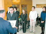 安曇野署で15日、ヤングドライバークラブ(YDC)事故防止コンクールと交通安全メッセージ・ポスター(県安全運転管理者協会など主催)の成績優秀4クラブ、2個人への表彰状の伝達式が行われた。同コンクールクラブ員20人以下の部で最優秀となった中部電力豊科営業所に表彰状が贈られた。 |