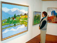 池田町内の画家の絵画の展示会「春を待つ・安曇野 ふるさとを描く画家」が3月15日まで同町の安曇野東山包美術館で開かれている。画家8人の安曇野の四季をとらえた風景画約20点が展示され、来館者の目を楽しませている。 |
