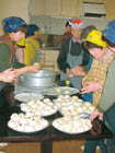 松川村役場経済課は22日、郷土料理に触れ村営温泉宿泊施設すずむし荘での入浴を楽しむ体験イベントを同荘で開いた。村内外から10人ほどが参加し、野沢菜やナスを具材にした昔ながらのまんじゅうづくりに挑戦した。 |