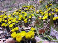 木崎湖東側の東海ノ口一津から崩沢にかけては、古くからフクジュソウが自生しており、崩沢地区では農業基盤整備事業終了後、地元の人たちが田のあぜや土手にフクジュソウとスイセンを植え「福寿草と水仙の里」として整備、毎年春にはたくさんの花が咲く。 |