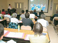 池田町の厚生連安曇総合病院の森林セラピー講習会は13、14の両日、同病院で開かれている。関係者約50人が参加して、同病院の医師、管理栄養士、理学療法士、臨床心理士などの講演を聴き、ストレス社会に生きる現代人に対する森林セラピーの癒やし効果について理解を深めている。 |