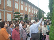 | 近代化の息吹に感嘆 大糸タイムスバスの旅 世界遺産めざす富岡製糸場 大糸タイムス友の会はこのほど、日帰りバスの旅を実施。会員ら41人が群馬県富岡市の富岡製糸場を訪ね、日本近代化の息吹に触れた。 明治政府は樹立とともに殖産興業を推し進め、生糸の輸出による外貨獲得を国策とし、明治5年、官製の製糸場を建設。約5万2000平方bという広大な敷地に、フランス人技術者により、鉄骨の代わりに木製柱を使った木骨レンガ造りの繰糸場や繭倉庫などが建てられ、そのまま今に残っている。 |