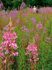 | ヤナギラン見ごろ 国営公園に初夏 安曇野市堀金烏川、国営アルプスあづみの公園でヤナギランが見ごろを迎えている。一面が赤紫に染まり、ようやく新緑の季節を迎えた山の緑との彩りをカメラにおさめる人がたくさん訪れている。ヤナギランは、園内北側の段々畑約530平方bに約8000株が植えられている。ほぼ例年どおり6月中旬ころから咲き始めて7月中旬まで楽しめる。ヤナギランは本来、標高1000b以上の高原に自生しており、同公園の標高680b前後の場所で花を咲かせるのは珍しいという。 |