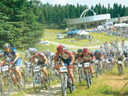 | MTB 真夏の熱戦 白馬さのさか 五輪代表山本選手も 日本マウンテンバイク協会は27と28の両日、白馬村のさのさかスキー場特設コースで、「マウンテンバイカーズフェスティバルIN白馬さのさか」を開催し、全国から集まった420人余の選手が豊かな自然に囲まれた真夏のさのさかで熱戦を繰り広げた。 ことしは北京五輪のマウンテンバイクの日本男子代表に選ばれた全日本チャンピオンの山本幸平選手(チームブリヂストンアンカー)が、さのさかの起伏のある5・4`のコースを6周する男子エリート部門に出場。巧みなハンドリングで安定した走りを披露した。 |